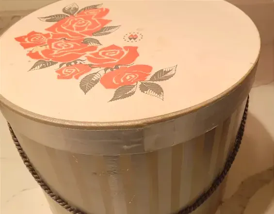 She gave me a sympathetic wince and stood up, reached under the rollaway bed and slid out a big round box—a silver and gray striped hatbox made of smooth and sturdy cardboard, with red roses printed on the lid. Billie set the box on the unmade bed and stepped away as if the thing might explode.