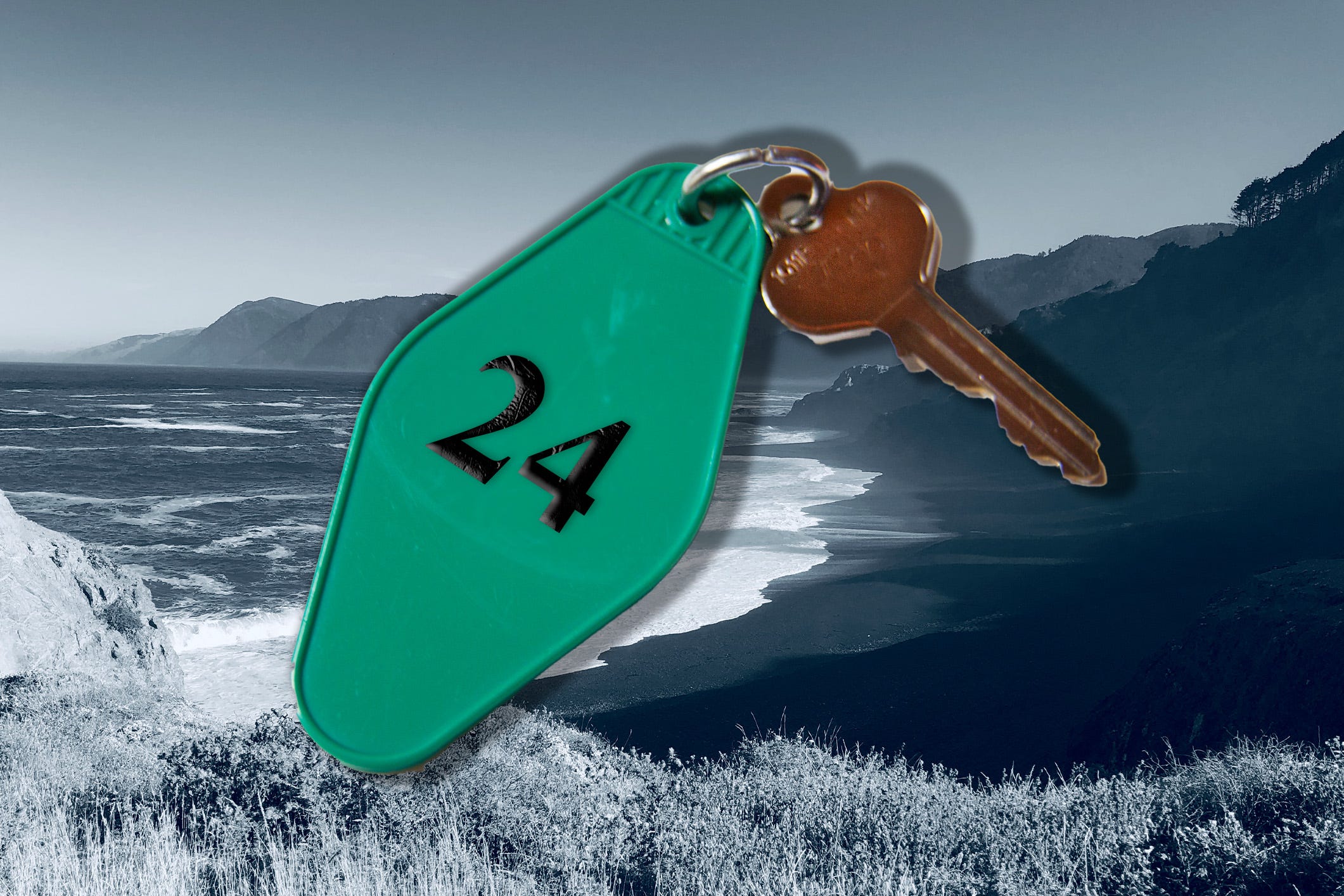 I sat on the messed-up bed and dumped it all onto the bedspread: a child’s dimestore kaleidoscope; a tiny polished abalone shell; a motel key on a beaded chain with a green plastic tag embossed with the black silhouette of a squawking crow and the words, The Crow’s Nest, Shelter Cove, California; a Robert Kennedy for President pin-button; and a Polaroid photo of my mother smiling in the blue hat on a windy bluff overlooking the ocean.