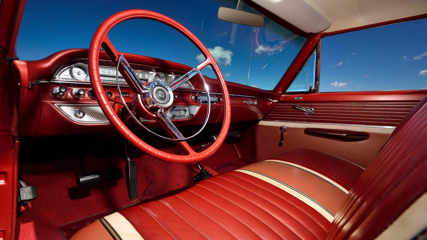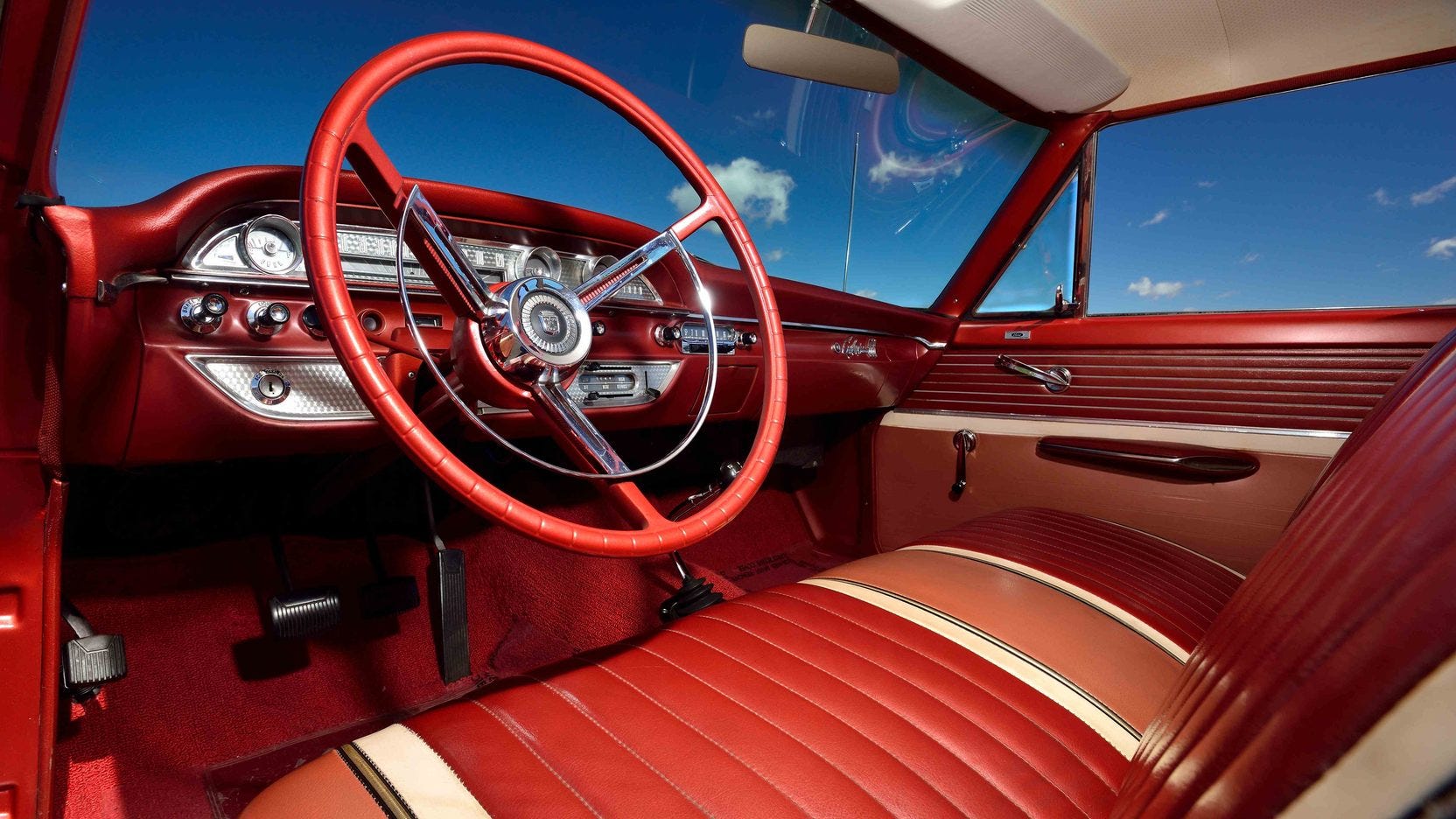 The car was a 62 Ford Fairlane 500. Dull white body paint, a little chrome here and there and a few minor dings. But the interior was pristine, all of it decked out in bright red—the vinyl upholstery, the door panels, the low-pile carpet, the metal dash, the big round Bakelite steering wheel, even the foldout ashtray. “Three on the tree with a 283,” Sonny said. “I bought it a couple years ago for a trip I never got to take. And I have the Harley now, so…”