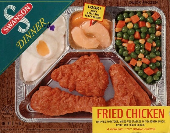 And I turned off the television and finished my unevenly cooked Swanson’s Fried Chicken Dinner in the darkening silence.