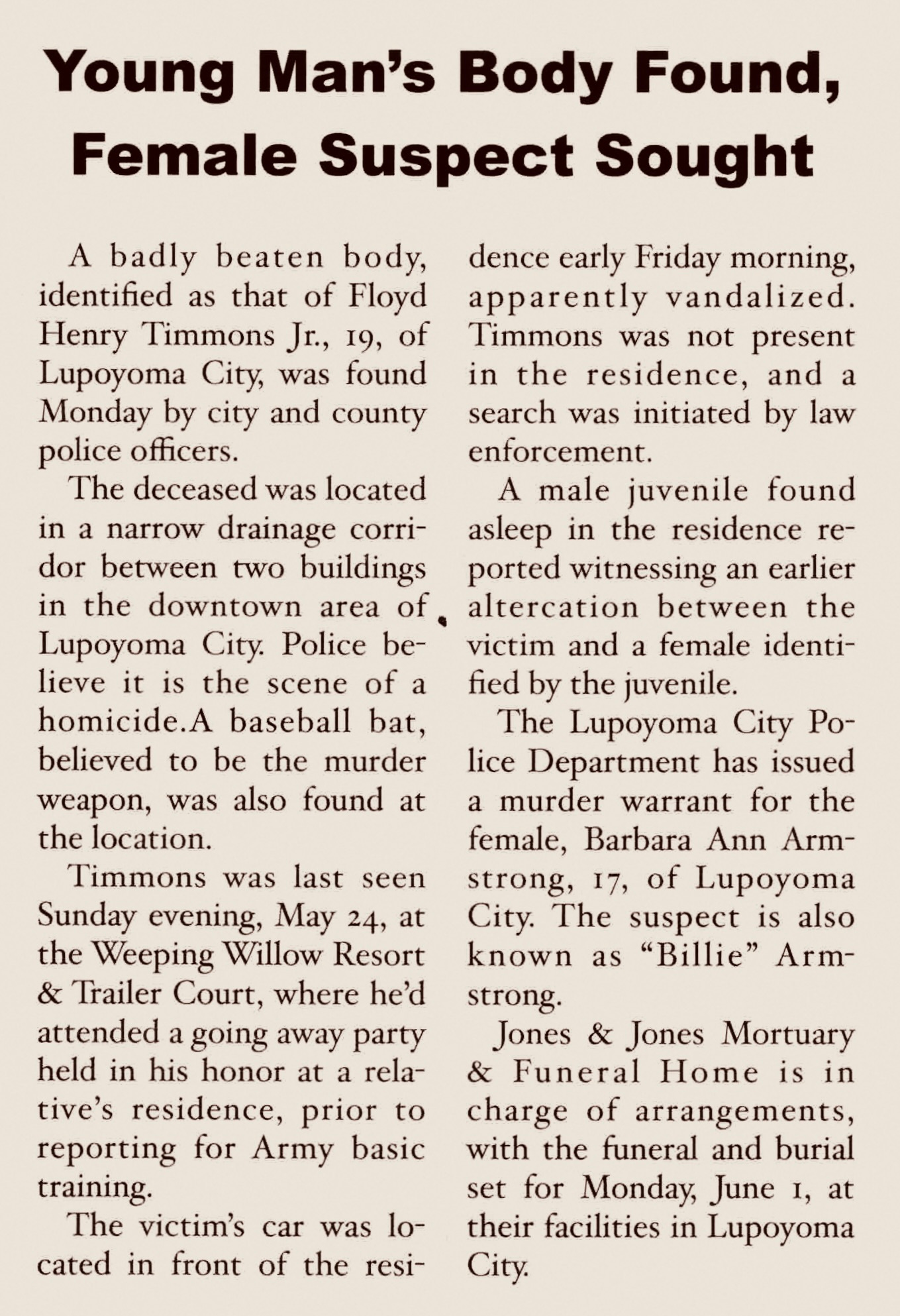 From the Lupoyoma Call & Record, May 27, 1970